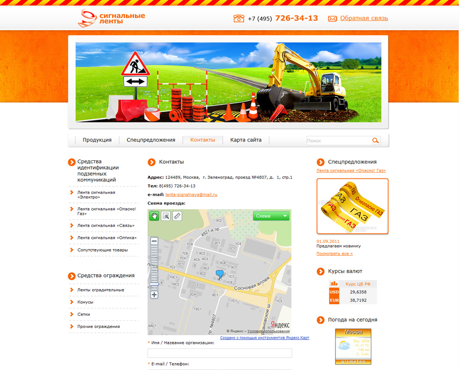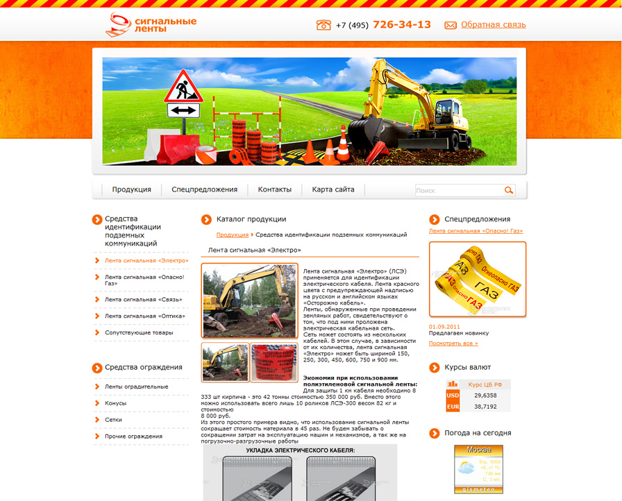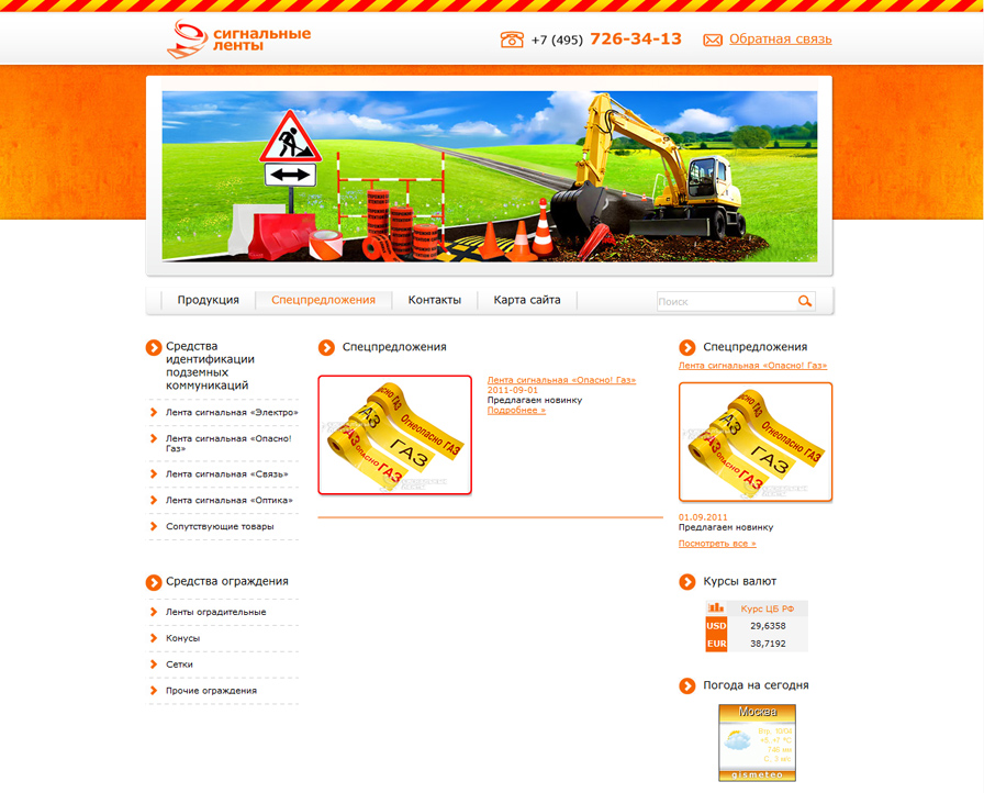 Сайт компании «Сигнальные ленты» создан в мае 2012 года. При разработке концепции учитывалась узкая специализация компании, предлагающей небольшой ассортимент продукции. И ее специфика – отчасти новые товары, мало знакомые потребителю, однако полезные и нередко инновационные.