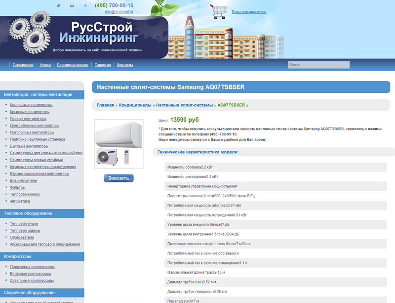 Данные требования были взяты за основу в работе с новым сайтом www.rs-climat.ru. Его концепция стала потребительски ориентированной, призванной предоставить клиенту необходимую информацию по интересующему запросу. Выполнен редизайн шаблонов всех страниц, установлена новая CMS, отвечающая современным стандартам управления сайтом, позволяющая осуществлять эффективную оптимизацию и наполнение ресурса.