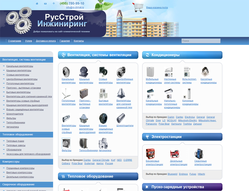Разработана четкая иерархия структуры каталога. Позиции товаров, которых в каталоге компании насчитывается более десяти тысяч, перенесены в полном объеме. Реализованы новые возможности удобной ориентации пользователей в ассортименте товаров по их типу, мощности, другим значимым характеристикам.